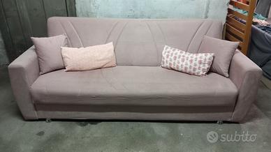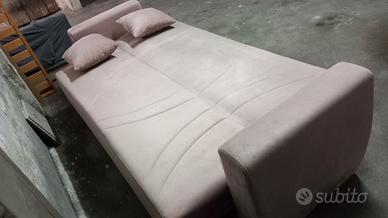 Carinissimo Divano letto mod. Clik Clak, da 3posti della "Iskitbal" con vano contenitore sottostante. Il divano è in microfibra effeto pesca di colore rosa antico pallido. Il divano è in ottime condizioni generali, non presenta problemi o rotture. ne tantomeno si affonda. Il letto da 1piazza e mezza si compone abbassando lo schienale. Misure divano: 215x85cm. Prezzo affare 70€ con possibilità di trasporto fino giù al proprio civico, per Napoli e provincie(spesa a parte). Astenersi perditempo, solo se realmente interessati all'acquisto. Zona Villaricca(NA).
