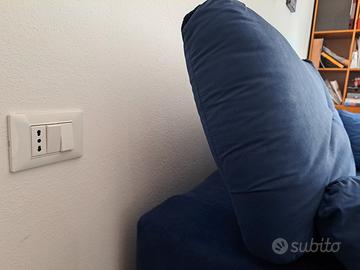 Divano letto blu. misure: Larghezza 175cm altezza 86cm profondità chiuso 110cm, aperto 230 misura materasso (incluso, ancora con celofan) 115x180cm Poggiatesta con posizione regolabile.