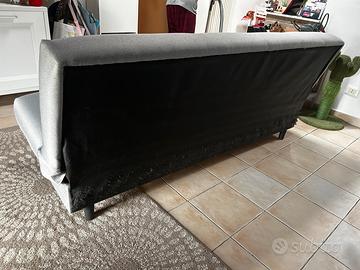 Divano letto con vano contenitore, misure in ultima foto. Colore grigio chiaro. Usato ma in buone condizioni. NB: retro rovinato da unghie di gatto, vedere bene le foto. Ritiro a carico dell’acquirente.