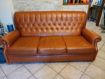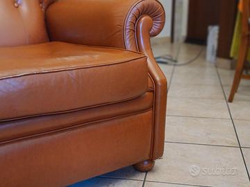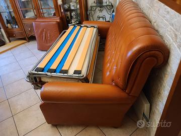 Divano letto stile inglese in vera pelle modello Chester, misure L 200 cm H 95 cm Profondità 100cm. Letto a scomparsa con toghe, larghezza 160 cm x 190 cm in lunghezza.