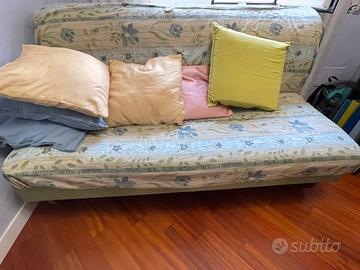 Buongiorno a tutti. Si vende un divano letto, con doghe in legno e comode rotelle per spostarlo. Aperto misura 160x200cm. Chiuso misura 160 (largh)x 100 cm (40 cm di spalliera+60 cm di seduta). Apertura comoda, stato buono. Ritiro e Trasporto a carico dell'acquirente. Zona Napoli Fuorigrotta.