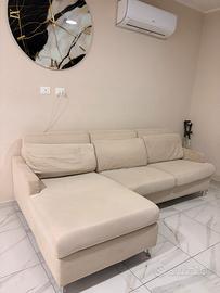 Divano 4 posti con penisola, aprendolo diventa un letto matrimoniale. Sotto la penisola c’è il cassettone.