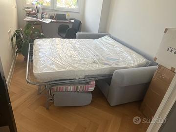 Vendesi DIVANO LETTO in ottime condizioni al prezzo di euro 500. Utilizzato solo in casa al mare in rare occasioni quindi in stato seminuovo. Materasso ancora imballato e mai utilizzato. Presenta tappezzeria pulita e integra ma interamente sfoderabile e sostituibile con altra di proprio gusto. Apertura e chiusure facilissime con una mano in 3 secondi.