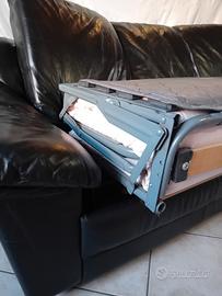 presenta un cucino poggia braccio sfondato e il poggia schiena leggermente sfondato. parti della pelle usurati dal tempo e dell'usura. il divano letto funziona correttamente integro e completo di materasso. Disponibile per la visione in loco.