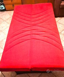 Divano letto colore rosso misure cm 185 x 75 aperto cm 105 con un ampio cassetto scorrevole e due guanciali a corredo