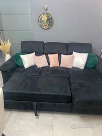 Divano letto come nuovo, 4 posti seduta lunga con meccanismo letto scorrevole, poggiatesta scorrevole. Tessuto antimacchia colore camoscio antracite scuro.