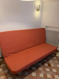 Divano letto a 3 posti, con materasso in schiuma/skartofta rosso/marrona. Con meccasnismo a scatto, il divano si trasforma in un letto. Contattare solo tramite subito. No email. Grazie.