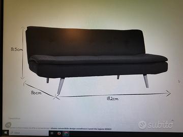 Divano letto convertibile design scandinavo blu cobalto, 3 posti sedere, L182, P86, H81, posto letto L182, L110, H42, 100% poliestere, piedi legno betulla.