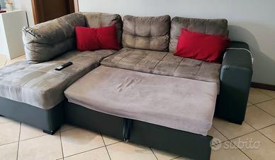 Divano angolare con penisola Diventa un letto in pochi secondi Cuscini trapuntati rimovibili Lunghezza 2.20m Alcuni segni di usura visibili nelle foto Prezzo trattabile Disponibile da fine febbraio