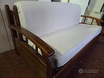 Vendo divano letto con struttura in legno e rete elettrosaldata il tutto in biono stato e con possibilità di consegna Misure 180x90 Apertura 180x195