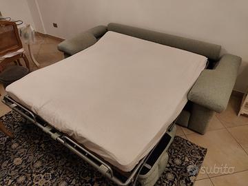 Per acquisto nuovo divano, vendo divano letto con materasso, resistente e Grande, "Dondi salotti". tessuti dai colori tenui e rilassanti, come da foto. Spazio di seduta comodo per 3 adulti. Ingombro da montato circa 240x 100 x 100 cm.