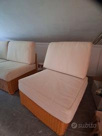 Set composto da divano letto, poltrona e puff.