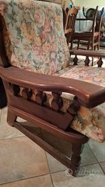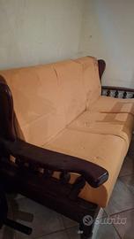 divano letto e poltrona in legno, ideale per una casa in montagna o al mare, in buono stato, con cuscini sfoderabili. Neo, manca la fodera di un cuscino e ha qualche graffio da uso e traslochi Ritiro sul posto