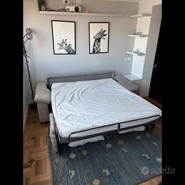 Divano letto Poltrone e Sofà Tessuto grigio ghiaccio anti macchia Acquistato nel 2018 per 800€ Dimensione divano: 225x100x100 cm Dimensione materasso: 190x160x12 cm Compreso nel prezzo anche mobile laterale Ikea bianco In ottime condizioni al netto di un pezzo rotto facilmente sostituibile (vedi foto) Ritiro solo a mano a Milano in zona Corso Italia solo dal 26 al 28 aprile 2025