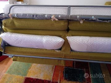 Vendo a Trieste divano-letto Poltrone e Sofà in buone condizioni. La meccanica del letto è perfetta perché usato poco, il tessuto del divano ha qualche macchiolina (di cui ho messo le foto per onestà), ma eventualmente posso portarlo in lavanderia prima del ritiro dell'acquirente. Il divano è sfoderabile e lavabile in lavatrice. Ci sono anche due comodi porta cuscini (foto) e un materasso incluso di ben 17 cm.
