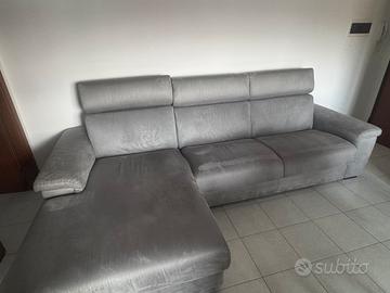 Divano letto poltrone e sofà 3 posti più penisola materasso alto 17 cm, tessuto alcantara grigio con poggia testa regolabili completamente smontabile e sfoderabile, la penisola può essere montata su entrambi i lati. Divano nuovo
