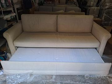 Divano letto Poltrone e Sofà, 206(L)x92(P)x80(H) in tessuto beige sfoderabile e lavabile.