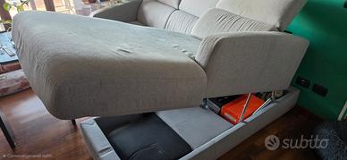 vendo causa ristrutturazione divano letto Poltrone e Sofa' da 3 posti+ penisola sx. 2 anni di vita cassone porta oggetti sotto penisola, cassone per far diventare divano letto, testiere reclinabili meccanicamente in 3 diverse posizioni. misure larghezza 220 profondita 110 senza penisola 180 con penisola. colore grigio tortora.