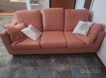 Divano letto Poltrone Sofà 3 posti, rosa colore come in foto, piedi in legno marroni, materasso sfoderabile, presto pubblico altre foto e misure. Ritiro zona Pisana Spallette piano terra con facilità di carico su furgone nel parcheggio condominiale