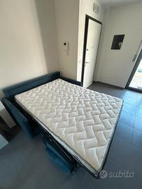 PREZZO TRATTABILE •Divano-letto in tessuto modello “Barete” 3 posti con braccio sottile. Dimensioni: 87x176x102 • Materasso bianco Memory estraibile. Dimensioni: altezza 17 cm, 140x200 •2 cuscini PoltroneSofà abbinati in tessuto modello “Susano”. Dimensioni: 50x50