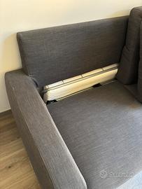 Vendo divano letto grigio, dall’estetica semplice, in ottime condizioni. Larghezza 190cm profondità 87cm con materasso matrimoniale molto comodo e facilmente estraibile. Trasporto a carico dell’acquirente, zona Milano Centrale. Per ulteriori informazioni non esitate a contattarmi.