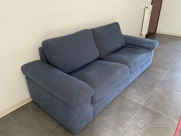 Vendo divano letto ribalta 3 posti poltrone sofà, color blu scuro, sfoderabile e lavabile. È leggermente rovinato, in quanto un po’ graffiato (vedete dettaglio), ma comunque comodo e tenuto bene.