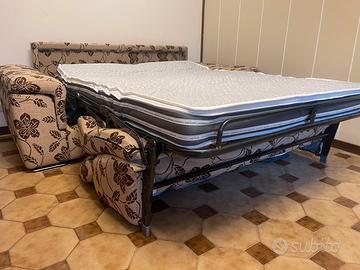 Vendo questo bellissimo divano letto di poltrone Sofà praticamente nuovo, usato veramente 2 volte. Il divano presenta un materasso da 17 cm (raramente si trova materassi di questo spessore e qualità nei divani letto), Il divano viene venduto con doppie fodere, quella che vedete in foto, è ststa realizzata con della stoffe molto pregiata da un tappezziere, l’originale è di colore gtigio topo, praticamente tenuta 2 settimane e poi fatta rivestire. Il divano di apre senza togliere nessun cuscino, veramente pratico e veloce. Le dimensioni sono, larghezza 2,18 m altezza 1m e profondità 1,02m. Per ulteriori informazioni o foto non esitate a contattarmi.