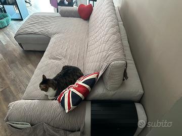 Vendo divano PoltroneSofà in microfibra, comodo e facile da pulire, ideale con bambini o animali. Trasformabile in letto, con chaise-longue elegante, cassonetto capiente e poggiatesta regolabili. In alcuni punti presenta segni di usura dovuti alle unghie dei gatti. Compreso anche copri divano.