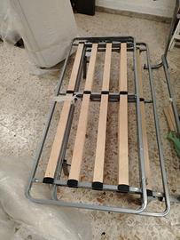 Divano letto di CaliaItalia matrimoniale, completo di due cuscini e un rivestimento di colore verde che funge da coperta. Il divano è smontato