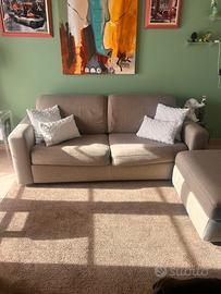 Divano letto + pouf in tessuto resistente color tortora poltronesofà