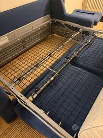 Divano letto tessuto tipo alcantara di colore blu in buonissimo stato completamente sfoderabile