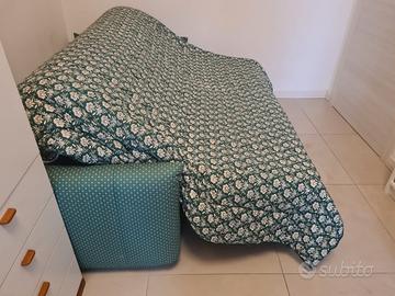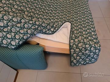 Vendo divano a 3 posti marca RIMA. Meda Brianza , trasformabile in letto matrimoniale grazie al meccanismo a doghe LAMPOLET che funziona in modo semplice e veloce. il divano destinato a una seconda casa di campagna è stato usato solo occasionalmente , il rivestimento verde e verde con fiordalisi della trapunta imbottita lo rende molto adatto ad ambiente moderno o rustico, grazie ai 4 cuscini su misura la seduta è molto confortevole . il materasso matrimoniale in gommapiuma presenta zone ingiallite dal tempo. lung divano cm 193,prof cm 102.altezza bracciolo cm 58. disponibili anche misure letto. ritiro sul posto in 2 persone 4 piano con scala condominiale ampia. zona con parcheggio. prezzo € 80 . faccio presente che qualcuno è interessato ma non mi arriva no i messaggi da Subito.