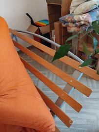 Struttura in faggio come nuova. Regolabile in altezza testata e lunghezza base orizzontale. Il divano misura cm 160x85x85.