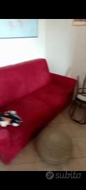 Divano letto rosso granata, comodo funzionante ma abbastanza usurato e con alcune macchie.