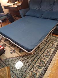 Divano letto in alcantare, blu navy. Marca Natuzzi (Divani&Divani) con rete a doghe in legno e materasso, larghezza letto 140cm. Misure divano 210 cm x 92 cm. Zona Alberone, Roma. Ritiro a carico dell'acquirente.