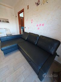 Divano letto angolare contenitore, in ecopelle nera
