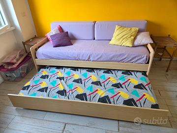 Vendo divano letto a doghe 200x90cm con secondo letto estraibile, completo di materassi.