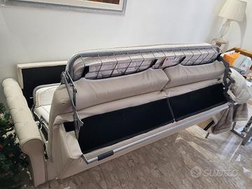 Si vende divano, in perfette condizioni, dovuto a difetto di fabbrica: cuscini con rifinitura in eco pelle sgretolata. Il divano si può usare perfettamente usando un copri divano che do in dotazione. Seduta comoda e materasso comodo con porta cuscini. Spedizione e Ritiro al piano. Lunghezza 187 e materasso da 1/2 piazza