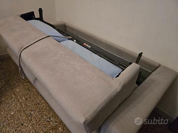 Divano in tessuto tipo alcantara beige sfoderabile con letto matrimoniale estraibile e alloggio cuscini integrato perfetto stato usato pochissimo vendo.