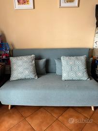 Divano letto una piazza e mezzo . Misure 140 larghezza , 75 profondità, 80 altezza . Materasso nasso tipo futon. Praticamente nuovo . Ritiro abitazione a carico compratore .