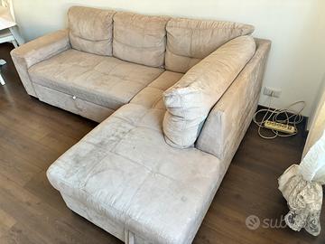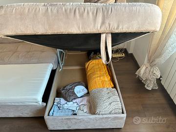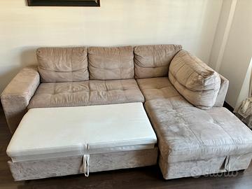 Divano beige con penisola contenitore e letto estraibile. Misure come in foto.