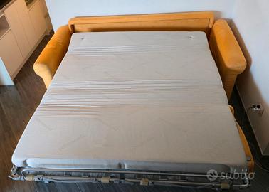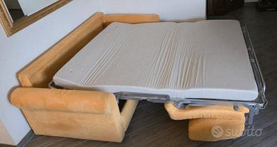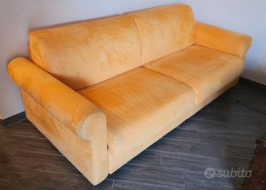 Divano letto POLTRONE E SOFA' in alcantara colore giallo ocra, interamente sfoderabile, con materasso alto CM 12, con rete elettrosaldata. Lungo cm 210 e profondo cm 100. Zona Colli Aniene
