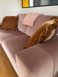 Divano Diotti, preso su misura, molto facile da aprire in letto da 1 piazza e mezza comoda. Rivestito in tessuto rosa.