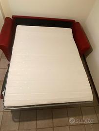 Vendesi divano letto colore rosso in buono stato, unici difetti due macchie come in foto, si puo ovviare ai difetti con un copridivano a proprio piacimento, come ho fatto io (foto con copridivano e cuscini). Vendo il divano a causa trasloco in altra città, contattare solo se veramente interessati.
