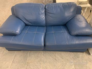 Vendo divano letto in pelle colore blu chiaro con cuciture bianco