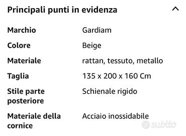 Vendo comodissimo divano letto sdraio due posti da giardino. Dimensioni 135x200x160, completo del suo parasole. Struttura in acciaio inox verniciato. La sdraio è funzionamente e strutturalmente perfetta, da pulire a fondo (l'ho solo sciacquata con la canna prima di fare le foto). Vendo per non utilizzo, solo ritiro a mano zona Sud Milano.