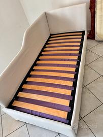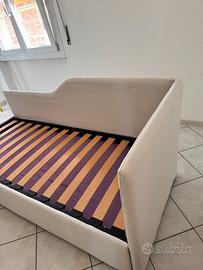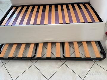 Divano letto in ottime condizioni, con secondo letto scorrevole ed entrambi con doghe in legno, copertura in stoffa. Non compresi i materassi! 89 cm x 189 cm!