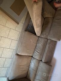Divano letto pellettina simil alcantara vellutino, con letto vero estraibile con materassino, a scomparsa, misure lumgo 2.50 m largo 1.00 e li ghezza pemisola 120 . Pnisola che si puo staccare. Poggiatesta regoalbili . Ottimo stato. Molto grande. Cedo causa esigenze spazio.