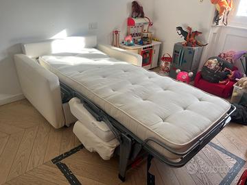 Vendo divano letto singolo marca Asnaghi, di alta qualità in condizioni eccellenti. Il divano è stato usato pochissimo ed è sempre stato tenuto con grande cura. Il rivestimento è in ottimo stato: sono presenti solo due macchiette davvero minuscole, appena visibili, che non compromettono estetica né utilizzo. Il meccanismo è solido e fluido, si riesce ad aprire il divano con una mano sola. Il materasso è comodo anche per un uso frequente. Il colore è chiaro, elegante e facilmente abbinabile.