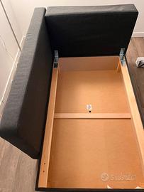 Divano letto IKEA modello BYGGET, grigio scuro, usato in buone condizioni. Disponibile da subito, ritiro a carico dell’acquirente. Nel contenitore c’è una crepa riparata che non compromette la funzionalità. Le sue misure sono: lunghezza 149 cm, larghezza 91 cm, altezza 73 cm. In modalità letto, le dimensioni sono: 80 X 202 cm.